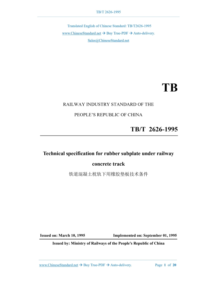 TB/T 2626-1995: Technical specification for rubber subplate under railway concrete track Delivery: 9 seconds. True-PDF full-copy in English & invoice will be downloaded + auto-delivered via email. See step-by-step procedure Status: Obsolete