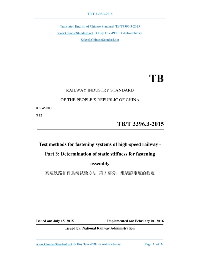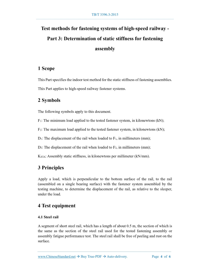 TB/T 3396.3-2015: Test methods for fastening systems of high-speed railway - Part 3: Determination of static stiffness for fastening assembly Delivery: 9 seconds. True-PDF full-copy in English & invoice will be downloaded + auto-delivered via email. See step-by-step procedure Status: Valid