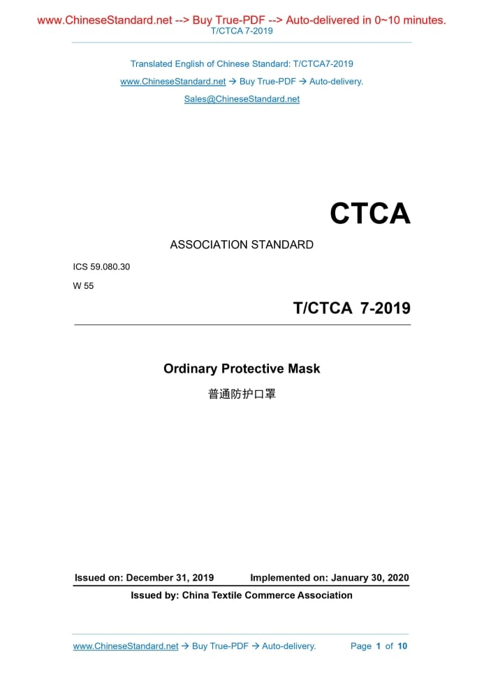 TCTCA7-2019: Ordinary protective mask Delivery: 9 seconds. True-PDF full-copy in English & invoice will be downloaded + auto-delivered via email. See step-by-step procedure