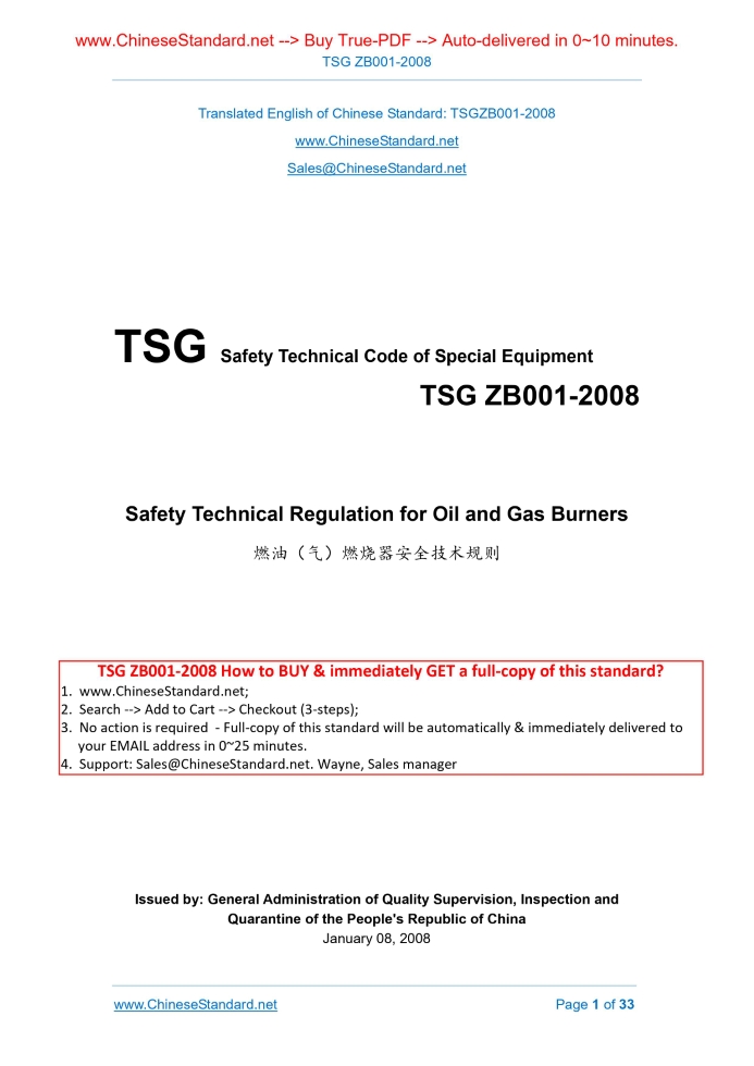 TSG ZB001-2008: Safety Technical Regulation for Oil and Gas Burners Delivery: 9 seconds. True-PDF full-copy in English & invoice will be downloaded + auto-delivered via email. See step-by-step procedure Status: Obsolete