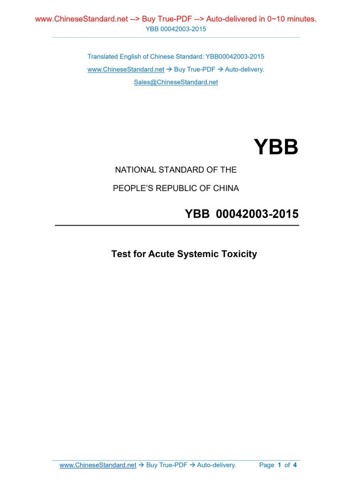 YBB 00042003-2015: Test for acute systemic toxicity Delivery: 9 seconds. True-PDF full-copy in English & invoice will be downloaded + auto-delivered via email. See step-by-step procedure Status: Valid