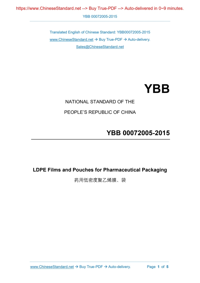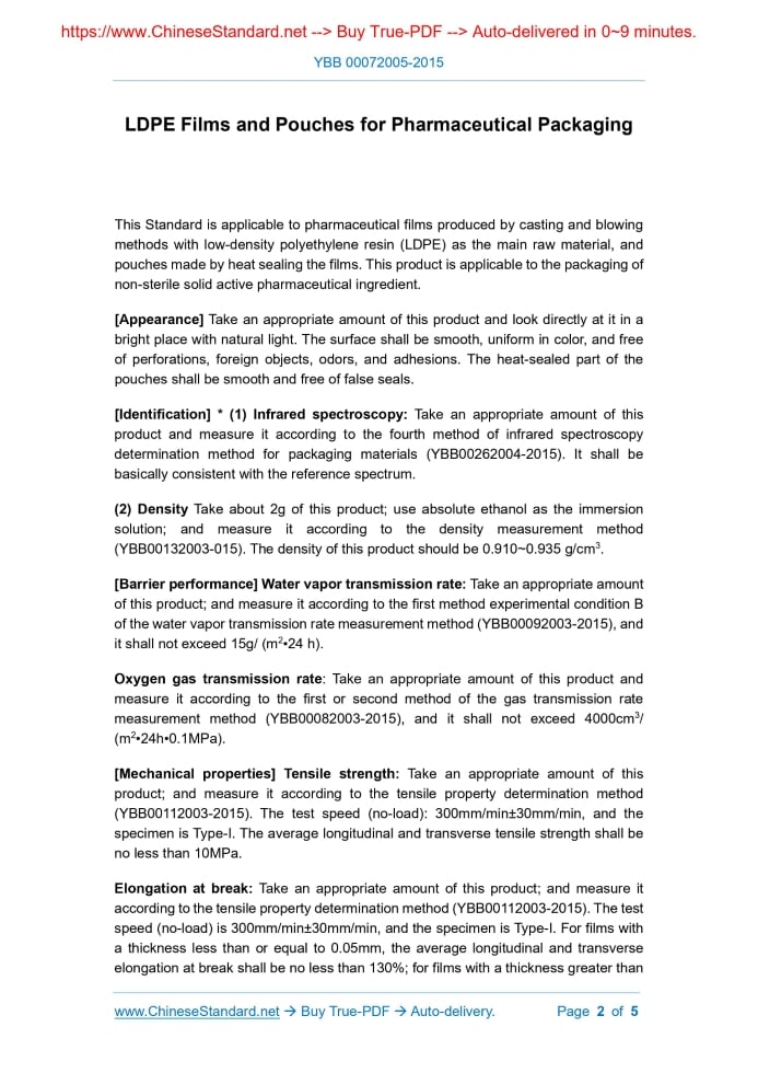 YBB 00072005-2015: LDPE Films and Pouches for Pharmaceutical Packaging Delivery: 9 seconds. True-PDF full-copy in English & invoice will be downloaded + auto-delivered via email. See step-by-step procedure Status: Valid