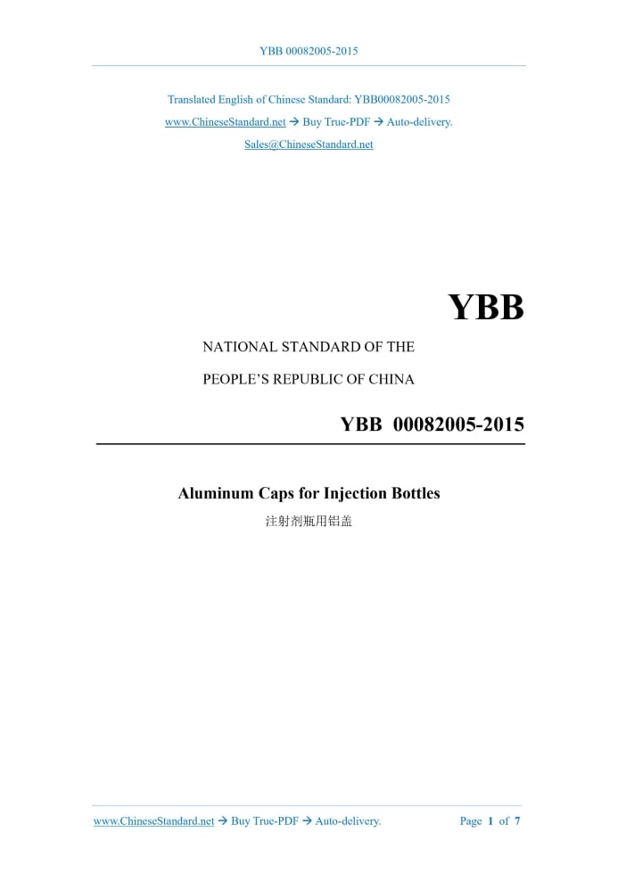 YBB 00082005-2015: Aluminum Caps for Injection Bottles Delivery: 9 seconds. True-PDF full-copy in English & invoice will be downloaded + auto-delivered via email. See step-by-step procedure Status: Valid