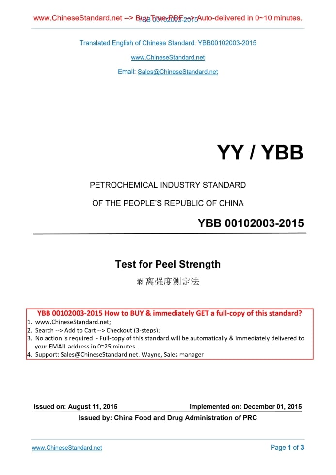 YBB 00102003-2015: Test for Peel Strength Delivery: 9 seconds. True-PDF full-copy in English & invoice will be downloaded + auto-delivered via email. See step-by-step procedure Status: Valid