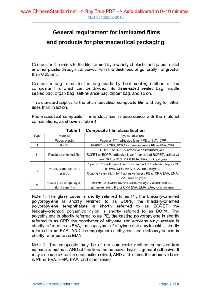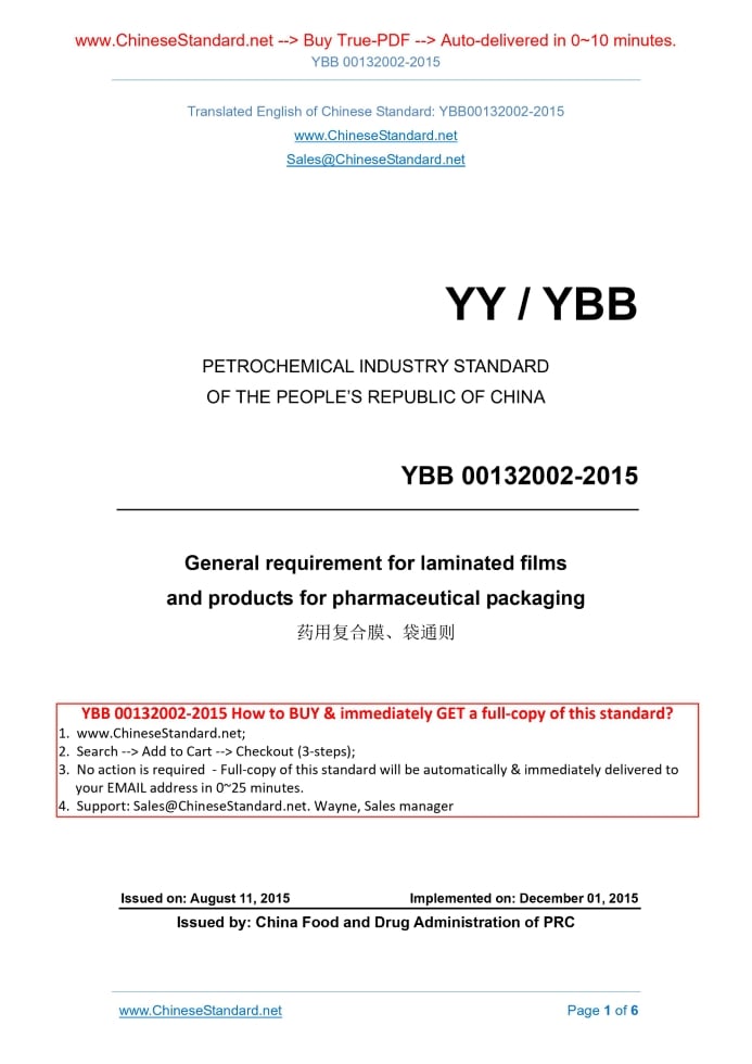 YBB 00132002-2015: General requirement for laminated films and products for pharmaceutical packaging Delivery: 9 seconds. True-PDF full-copy in English & invoice will be downloaded + auto-delivered via email. See step-by-step procedure Status: Valid