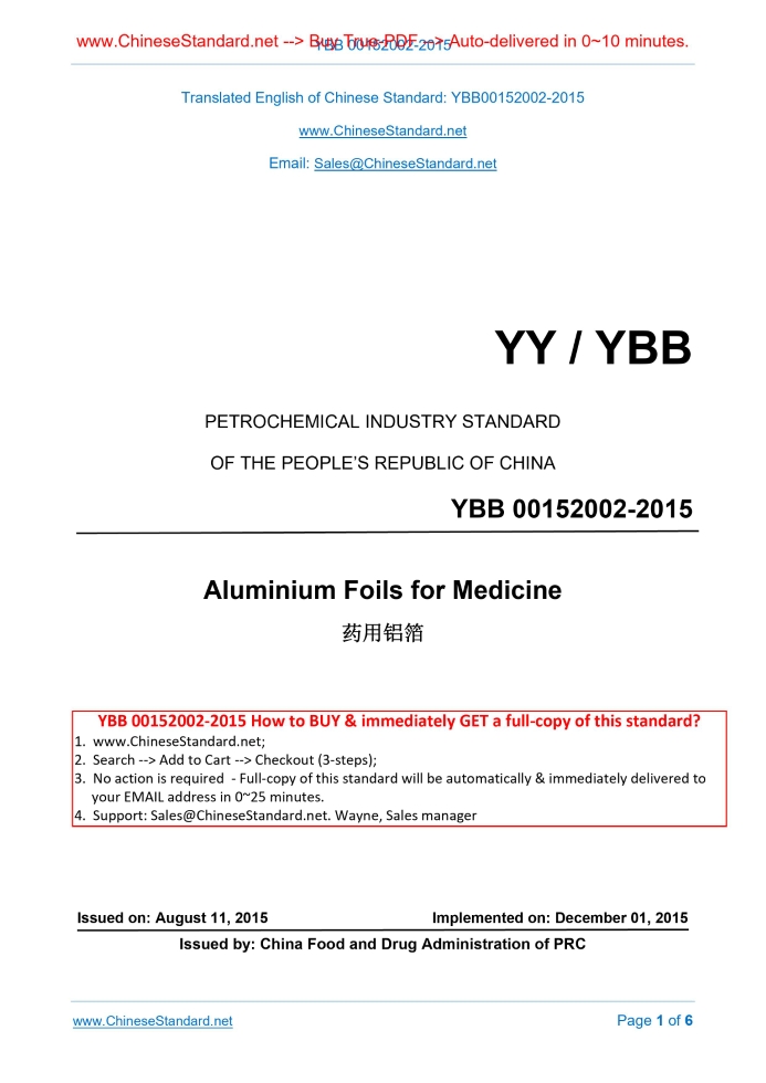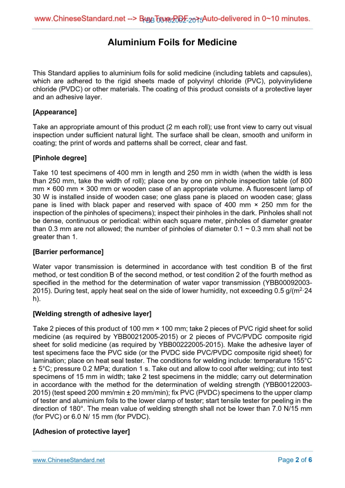 YBB 00152002-2015: Aluminium Foils for Medicine Delivery: 9 seconds. True-PDF full-copy in English & invoice will be downloaded + auto-delivered via email. See step-by-step procedure Status: Valid