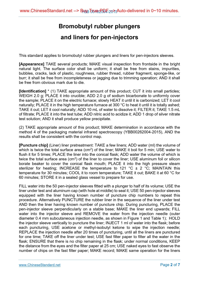 YBB 00162004-2015: Bromobutyl rubber plungers and liners for pen-injectors Delivery: 9 seconds. True-PDF full-copy in English & invoice will be downloaded + auto-delivered via email. See step-by-step procedure Status: Valid