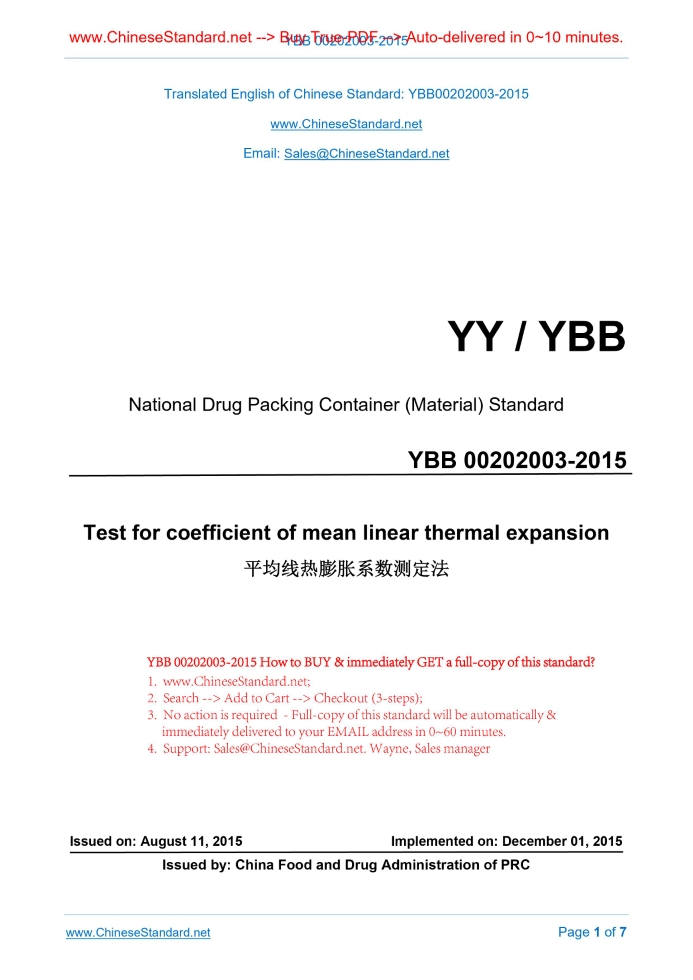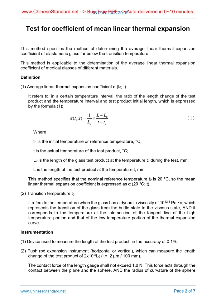 YBB 00202003-2015: Test for Coefficient of Mean Linear Thermal Expansion Delivery: 9 seconds. True-PDF full-copy in English & invoice will be downloaded + auto-delivered via email. See step-by-step procedure Status: Valid