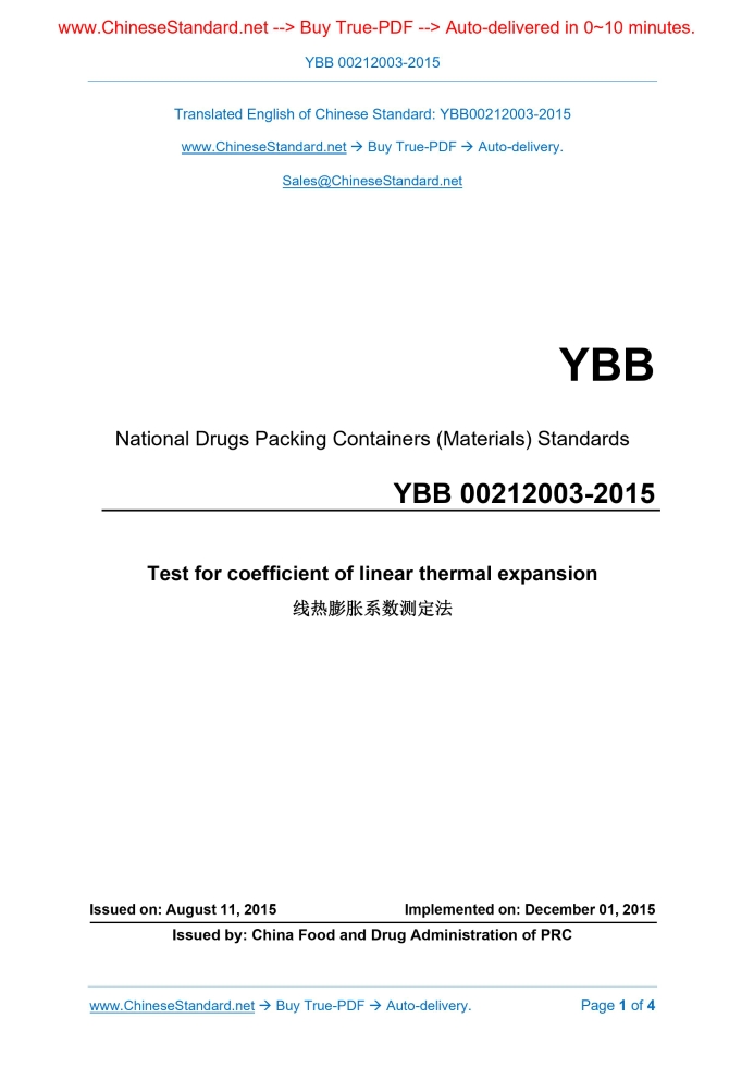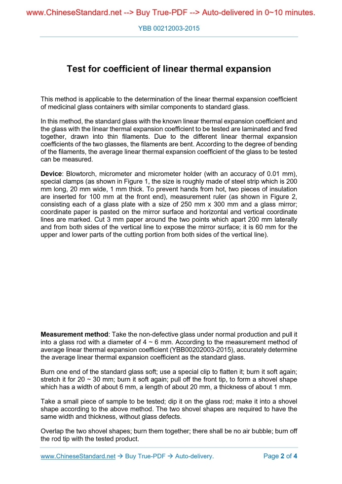 YBB 00212003-2015: Test for coefficient of linear thermal expansion Delivery: 9 seconds. True-PDF full-copy in English & invoice will be downloaded + auto-delivered via email. See step-by-step procedure Status: Valid