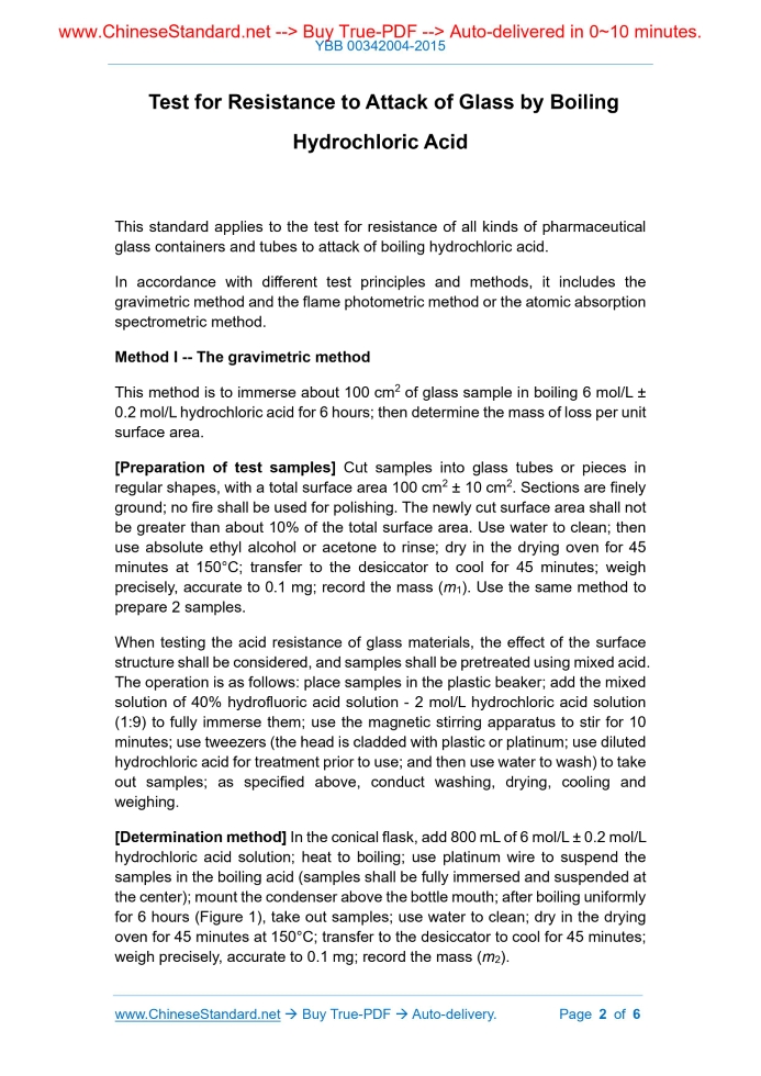 YBB 00342004-2015: Test for Resistance to Attack of Glass by Boiling Hydrochloric Acid Delivery: 9 seconds. True-PDF full-copy in English & invoice will be downloaded + auto-delivered via email. See step-by-step procedure Status: Valid