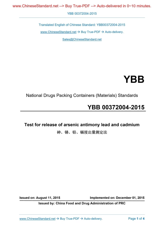 YBB 00372004-2015: Test for release of arsenic antimony lead and cadmium Delivery: 9 seconds. True-PDF full-copy in English & invoice will be downloaded + auto-delivered via email. See step-by-step procedure Status: Valid