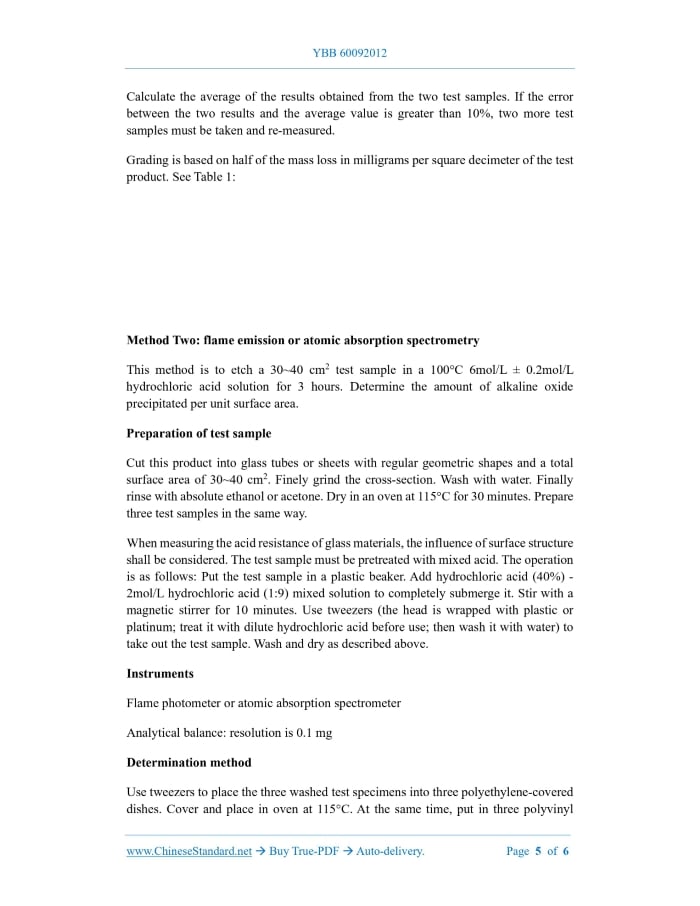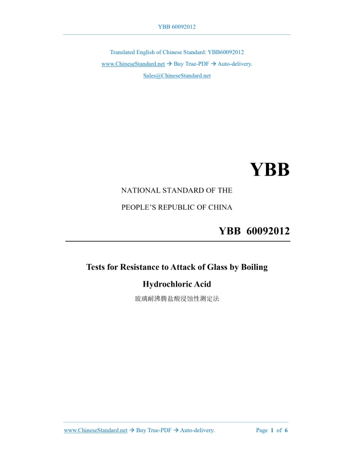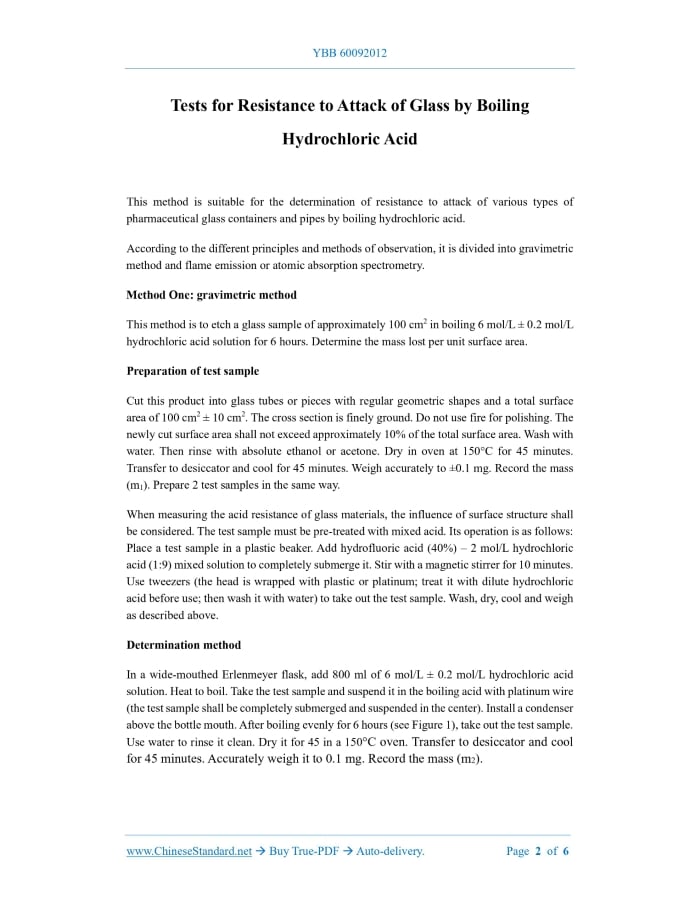 YBB 60092012: Tests for Resistance to Attack of Glass by Boiling Hydrochloric Acid Delivery: 9 seconds. True-PDF full-copy in English & invoice will be downloaded + auto-delivered via email. See step-by-step procedure