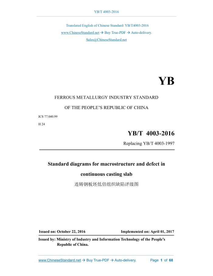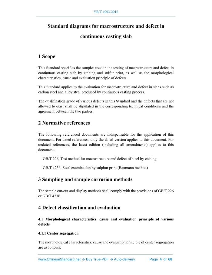 YB/T 4003-2016: Standard diagrams for macrostructure and defect in continuous casting slab Delivery: 9 seconds. True-PDF full-copy in English & invoice will be downloaded + auto-delivered via email. See step-by-step procedure Status: Valid YB/T 4003: Historical versions