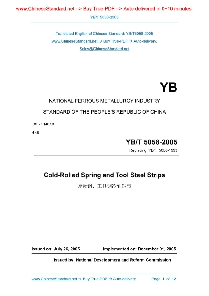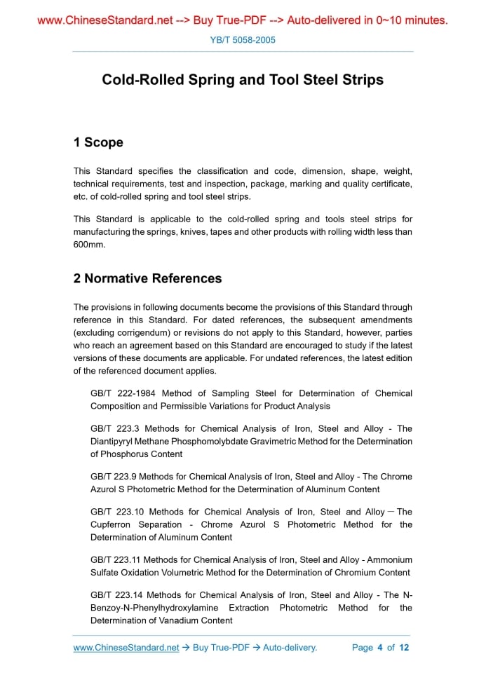 YB/T 5058-2005: Cold-Rolled Spring and Tool Steel Strips Delivery: 9 seconds. True-PDF full-copy in English & invoice will be downloaded + auto-delivered via email. See step-by-step procedure Status: Valid