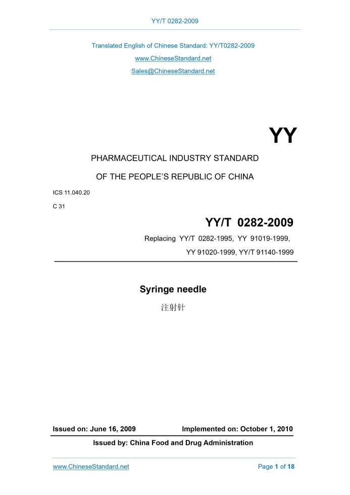 YY/T 0282-2009: Syringe needle Delivery: 9 seconds. True-PDF full-copy in English & invoice will be downloaded + auto-delivered via email. See step-by-step procedure Status: Valid YY/T 0282: Historical versions