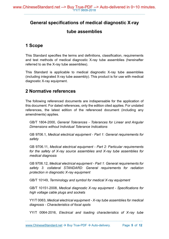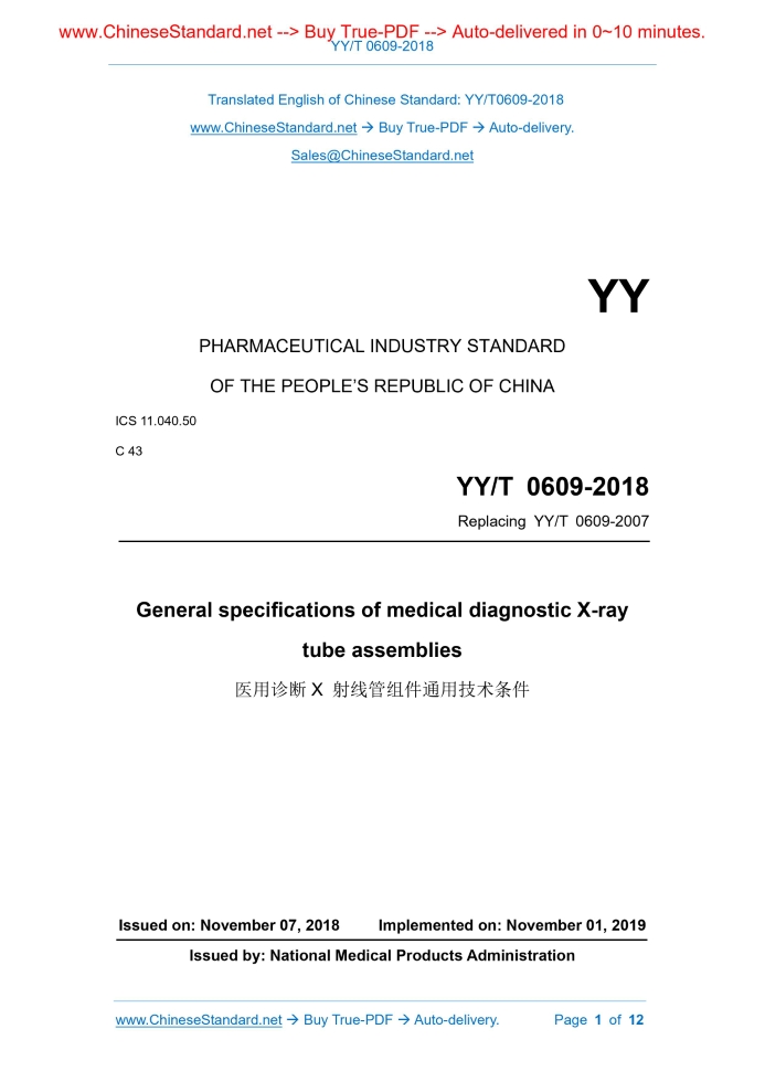 YY/T 0609-2018: General specifications of medical diagnostic X-ray tube assemblies Delivery: 9 seconds. True-PDF full-copy in English & invoice will be downloaded + auto-delivered via email. See step-by-step procedure Status: Valid YY/T 0609: Historical versions