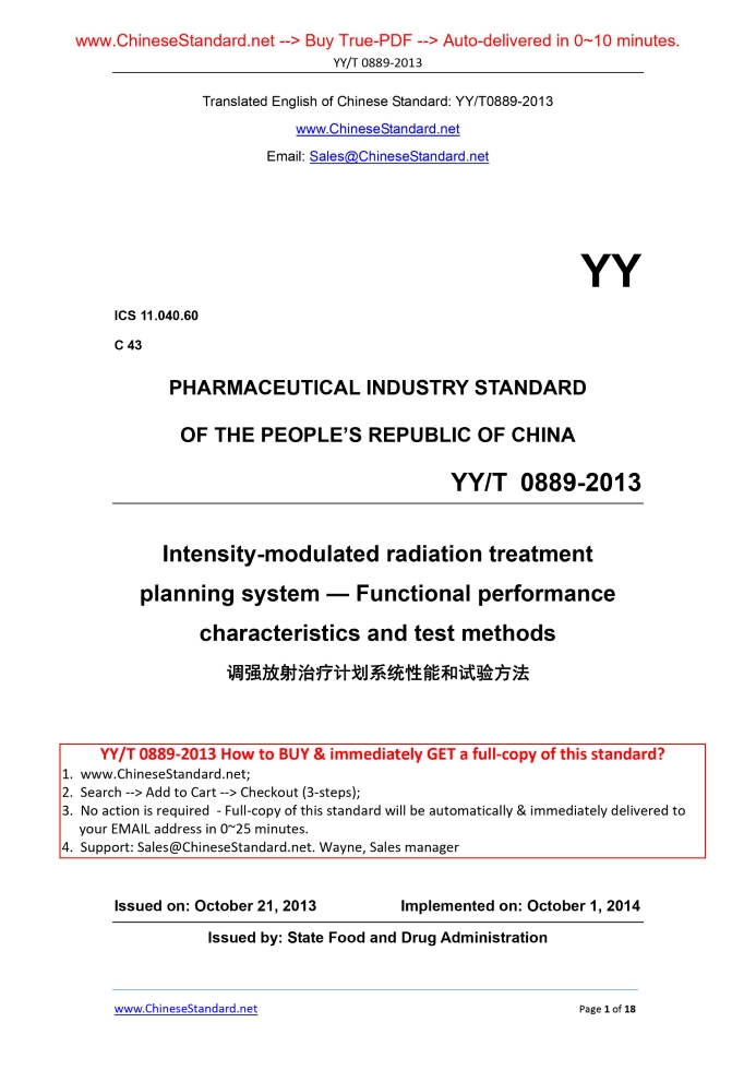 YY/T 0889-2013: Intensity-modulated radiation treatment planning system - Functional performance characteristics and test methods Delivery: 9 seconds. True-PDF full-copy in English & invoice will be downloaded + auto-delivered via email. See step-by-step procedure Status: Valid