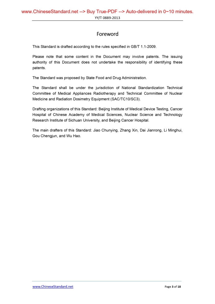 YY/T 0889-2013: Intensity-modulated radiation treatment planning system - Functional performance characteristics and test methods---This is an excerpt. Full copy of true-PDF in English version (including equations, symbols, images, flow-chart, tables, and figures etc.), auto-downloaded/delivered in 9 seconds, can be purchased online: https://www.ChineseStandard.net/PDF.aspx/YYT0889-2013 YY ICS 11.040.60 C 43 PHARMACEUTICAL INDUSTRY STANDARD YY/T 0889-2013 Intensity-modulated radiation treatment planning system — Functional performance characteristics and test methods Issued on. OCTOBER 21, 2013 Implemented on. OCTOBER 1, 2014 Issued by. State Food and Drug Administration Table of ContentsForeword... 3 1 Scope... 4 2 Normative references... 4 3 Terms and Definitions... 5 4 Performance Requirements... 6 5 Test Methods... 6 Annex A (Normative) Test Cases... 9 Annex B (Informative) Test Data... 17 Bibliography... 18ForewordThis Standard is drafted according to the rules specified in GB/T 1.1-2009. Please note that some content in the Document may involve patents. The issuing authority of this Document does not undertake the responsibility of identifying these patents. The Standard was proposed by State Food and Drug Administration. The Standard shall be under the jurisdiction of National Standardization Technical Committee of Medical Appliances Radiotherapy and Technical Committee of Nuclear Medicine and Radiation Dosimetry Equipment (SAC/TC10/SC3). Drafting organizations of this Standard. Beijing Institute of Medical Device Testing, Cancer Hospital of Chinese Academy of Medical Sciences, Nuclear Science and Technology Research Institute of Sichuan University, and Beijing Cancer Hospital. The main drafters of this Standard. Jiao Chunying, Zhang Xin, Dai Jianrong, Li Minghui, Gou Chengjun, and Wu Hao. Intensity-modulated radiation treatment planning system — Functional performance characteristics and test methods1 ScopeThis Standard specifies the terms, definitions, performance requirements and test methods of intensity-modulated radiation treatment planning system.2 Normative referencesThe articles contained in the following documents have become part of this Document when they are quoted herein. For the dated documents so quoted, all the modifications (Including all corrections) or revisions made thereafter shall be applicable to this document. GB 9706.5 Medical electrical equipment - Part 2-1.Particular requirements for the safety of electron accelerators in the range 1 MeV to 50 MeV3 Terms and DefinitionsThose defined in GB 9706.5, GB 15213, GB/T 17857 and YY 0637 AND the following terms and definitions apply to this Standard. The therapeutic dose that is given to target volume according to certain time dose splitting methods.4 Performance RequirementsFor each IMRT test case specified in Appendix A, DESIGN the treatment plan in accordance with the dose target specified in this Standard; REPORT the actual situations that meet dose target.5 Test MethodsTreatment plan shall be designed according to the requirements as stated in Appendix A. The conformance of dose target of each IMRT test case shall be checked. Dose target of test cases shall be satisfied as far as possible. Otherwise, the actual test data shall be provided for assessment, so as to determine whether the IMRT plan is acceptable.Annex A(Normative) Test Cases These test cases radiate die body through easily-designed fields. It is mainly used to verify the accuracy of system dose calculation prior to the design of IMRT treatment plan.Annex B(Informative) When designing treatment plan according to the test case requirements of Appendix A of this Document, the anatomical structure data in data package of AAPM TG119 technical report [1] is recommended to use. ......Source: Above contents are excerpted from the full-copy PDF -- translated/reviewed by: www.ChineseStandard.net / Wayne Zheng et al. Tips & Frequently Asked Questions:Question 1: How long will the true-PDF of English version of YY/T 0889-2013 be delivered?Answer: The full copy PDF of English version of YY/T 0889-2013 can be downloaded in 9 seconds, and it will also be emailed to you in 9 seconds (double mechanisms to ensure the delivery reliably), with PDF-invoice.Question 2: Can I share the purchased PDF of YY/T 0889-2013_English with my colleagues?Answer: Yes. The purchased PDF of YY/T 0889-2013_English will be deemed to be sold to your employer/organization who actually paid for it, including your colleagues and your employer's intranet.Question 3: Does the price include tax/VAT?Answer: Yes. Our tax invoice, downloaded/delivered in 9 seconds, includes all tax/VAT and complies with 100+ countries' tax regulations (tax exempted in 100+ countries) -- See Avoidance of Double Taxation Agreements (DTAs): List of DTAs signed between Singapore and 100+ countriesQuestion 4: Do you accept my currency other than USD?Answer: Yes. www.ChineseStandard.us -- YY/T 0889-2013 -- Click this link and select your country/currency to pay, the exact amount in your currency will be printed on the invoice. Full PDF will also be downloaded/emailed in 9 seconds.How to buy and download a true PDF of English version of YY/T 0889-2013?A step-by-step guide to download PDF of YY/T 0889-2013_EnglishStep 1: Visit website https://www.ChineseStandard.net (Pay in USD), or https://www.ChineseStandard.us (Pay in any currencies such as Euro, KRW, JPY, AUD).Step 2: Search keyword "YY/T 0889-2013". Step 3: Click "Add to Cart". If multiple PDFs are required, repeat steps 2 and 3 to add up to 12 PDFs to cart. Step 4: Select payment option (Via payment agents Stripe or PayPal). Step 5: Customize Tax Invoice -- Fill up your email etc. Step 6: Click "Checkout". Step 7: Make payment by credit card, PayPal, Google Pay etc. After the payment is completed and in 9 seconds, you will receive 2 emails attached with the purchased PDFs and PDF-invoice, respectively. Step 8: Optional -- Go to download PDF. Step 9: Optiona