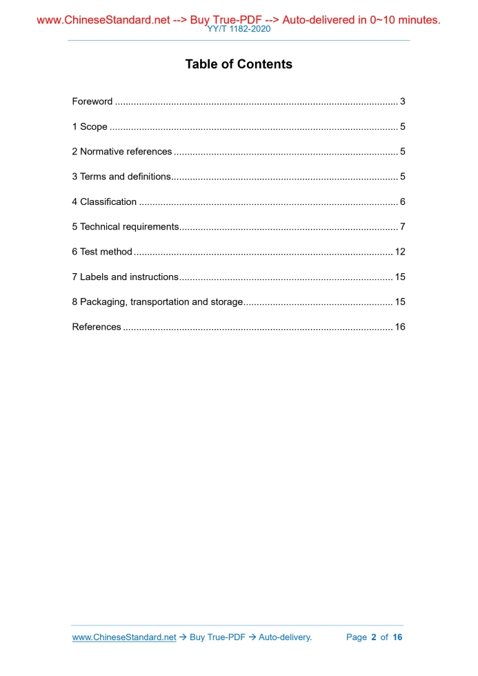 YY/T 1182-2020: Nucleic acids amplification test reagents (kits)---This is an excerpt. Full copy of true-PDF in English version (including equations, symbols, images, flow-chart, tables, and figures etc.), auto-downloaded/delivered in 9 seconds, can be purchased online: https://www.ChineseStandard.net/PDF.aspx/YYT1182-2020PHARMACEUTICAL INDUSTRY STANDARD OF THE PEOPLE’S REPUBLIC OF CHINA ICS 11.100 C 44 Replacing YY/T 1182-2010 Nucleic acids amplification test reagents (kits) ISSUED ON: FEBRUARY 21, 2020 IMPLEMENTED ON: JANUARY 01, 2021 Issued by: National Medical Products Administration Table of ContentsForeword ... 3 1 Scope ... 5 2 Normative references ... 5 3 Terms and definitions ... 5 4 Classification ... 6 5 Technical requirements ... 7 6 Test method ... 12 7 Labels and instructions ... 15 8 Packaging, transportation and storage ... 15 References ... 16 Nucleic acids amplification test reagents (kits)1 ScopeThis Standard specifies the terms and definitions, classification technical requirements, test methods, labels and instructions, packaging, transportation and storage of nucleic acids amplification test reagents (kits) [hereinafter referred to as "reagents (kits)"]. This Standard applies to the quality control of nucleic acids amplification test reagents (kits). Nucleic acids amplification methods include polymerase chain reaction (PCR) technology and isothermal nucleic acid amplification technology. This Standard does not apply to the following products: a) reagents (kits) for blood source screening; b) reagents (kits) for gene sequencing. This Standard is a general standard for nucleic acids amplification test reagents (kits). For products or reagents (kits) with special standards, corresponding product standards or technical requirements should be formulated according to product characteristics and special standard requirements.2 Normative referencesThe following documents are indispensable for the application of this document. For dated references, only the dated version applies to this document. For undated references, the latest edition (including all amendments) applies to this document. GB/T 21415-2008, In vitro diagnostic medical devices - Measurement of quantities in biological samples - Metrological traceability of values assigned to calibrators and control materials GB/T 29791.2, In vitro diagnostic medical devices - Information supplied by the manufacturer (labelling) - Part 2: In vitro diagnostic reagents for professional use3 Terms and definitionsThe following terms and definitions are applicable to this document. b) According to the principle of nucleic acid amplification, it can be divided into: variable temperature amplification detection kit and isothermal amplification detection kit; c) Classify according to methodologies; examples of common methodologies: PCR-fluorescent probe method, PCR-fluorescent dye method, PCR- melting curve method, multiple fluorescence PCR method, RT-PCR fluorescence method, nested-PCR method, gap-PCR method, loop- mediated constant temperature amplification method.5 Technical requirements5.1 General requirements 5.1.1 Appearance The reagents (kits) shall meet the appearance requirements that are specified by the manufacturer; the appearance requirements include but are not limited to the following: the reagents (kits) shall have complete components; the package shall be clean, free from leakage and damage; the signs and labels shall be clearly written. 5.1.2 Nucleic acid extraction function The nucleic acid extraction function shall meet the following requirements: a) For reagents (kits) that contain nucleic acid extraction components, the manufacturer shall make appropriate requirements for nucleic acid extraction, and verify the nucleic acid extraction function. For example: fully consider the interference factors in the sample extraction process and the possible impact on the subsequent sample amplification process; b) For reagents (kits) for which samples need to be extracted, but do not contain nucleic acid extraction components, the manufacturer shall state or specify the extraction reagents (kits) and provide verification or confirmation information; c) For reagents (kits) which are directly amplified without sample extraction, the manufacturer shall be able to provide sufficient evidence to prove the anti-interference of the enzymes in its products. 5.1.3 Internal standard and (or) control Manufacturers shall establish appropriate quality control procedures for the detection results of reagents (kits); they should reasonably set internal standard and (or) control in the reaction system according to the characteristics of their 5.2.6 Negative reference conformance rate When it is applicable, perform determination of the negative reference in the national reference or enterprise reference; the detection result shall be positive. The reference settings follow the following principles: a) Contain a certain number of samples without test substance; b) Fully consider factors such as possible interference, crossover, non- specific. For example: containing a certain number of other samples that are similar to the tested species, of the same infection site, or similar infection symptoms; c) When it is applicable, include a certain number of genotypes that are not within the declared detection range of the reagent (kit). 5.2.7 Detection limit The manufacturer shall specify and provide the detection limit of the reagent (kit); the establishing and verifying method of the detection limit of the reagent (kit) shall be scientific and feasible. Perform determination of the detection limit reference of the national reference or enterprise reference; the detection result shall meet the requirements of the national reference or enterprise reference. 5.2.8 Precision The precision within the batch shall meet that the coefficient of variation (CV, %) of the detected concentration log value is ≤ 5%. When the sample concentration is low, the 