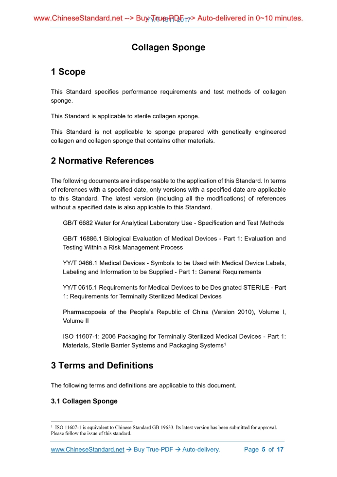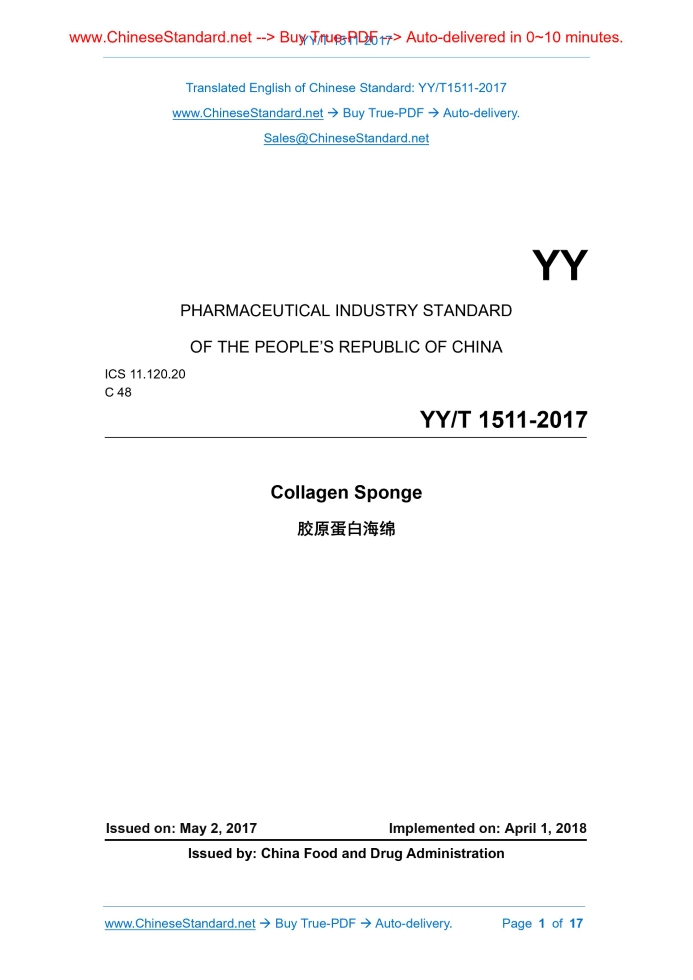 YY/T 1511-2017: Collagen Sponge Delivery: 9 seconds. True-PDF full-copy in English & invoice will be downloaded + auto-delivered via email. See step-by-step procedure Status: Valid