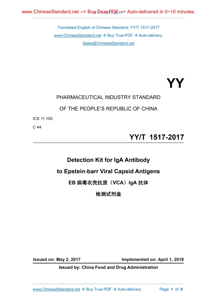 YY/T 1517-2017: Detection kit for IgA antibody to epstein-barr viral capsid antigens Delivery: 9 seconds. True-PDF full-copy in English & invoice will be downloaded + auto-delivered via email. See step-by-step procedure Status: Valid