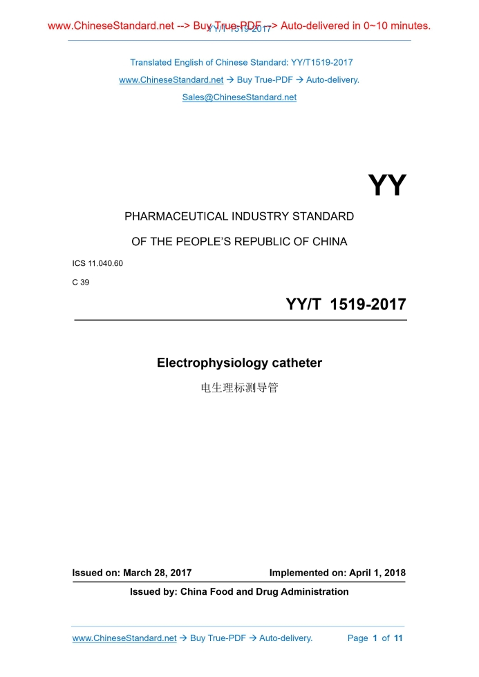 YY/T 1519-2017: Electrophysiology catheter Delivery: 9 seconds. True-PDF full-copy in English & invoice will be downloaded + auto-delivered via email. See step-by-step procedure Status: Valid