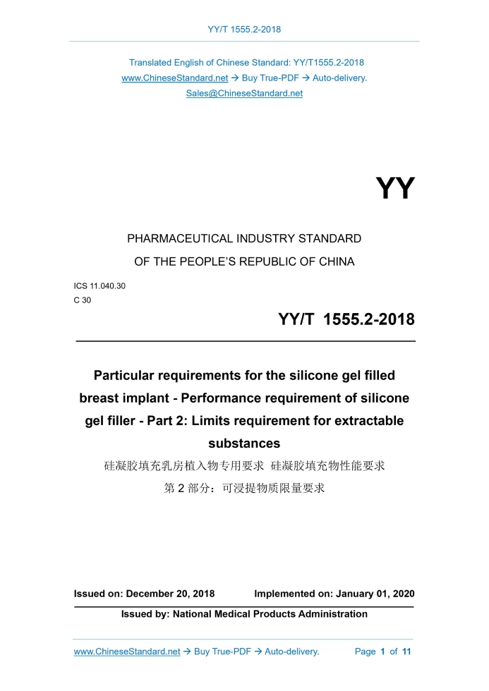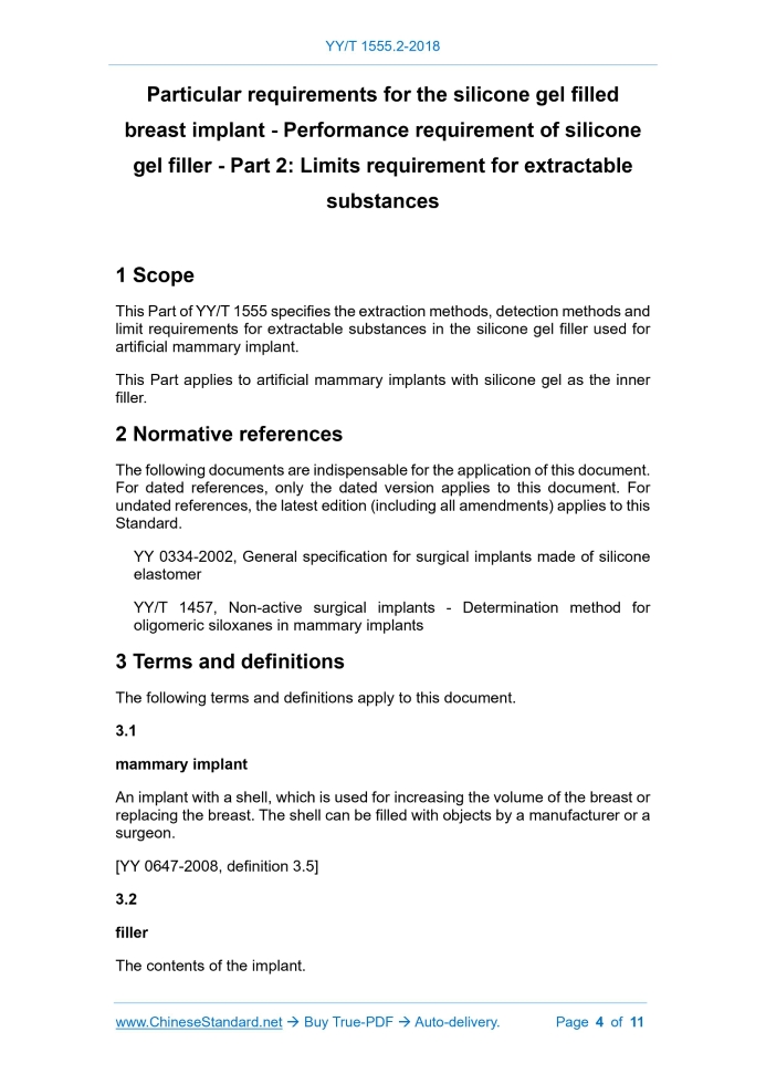 YY/T 1555.2-2018: Particular requirements for the silicone gel filled breast implant - Performance requirement of silicone gel filler - Part 2: Limits requirement for extractable substances Delivery: 9 seconds. True-PDF full-copy in English & invoice will be downloaded + auto-delivered via email. See step-by-step procedure Status: Valid