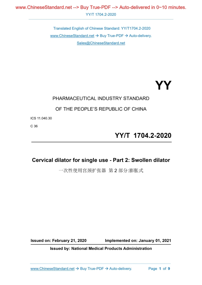 YY/T 1704.2-2020: Cervical dilator for single use - Part 2: Swollen dilator Delivery: 9 seconds. True-PDF full-copy in English & invoice will be downloaded + auto-delivered via email. See step-by-step procedure Status: Valid