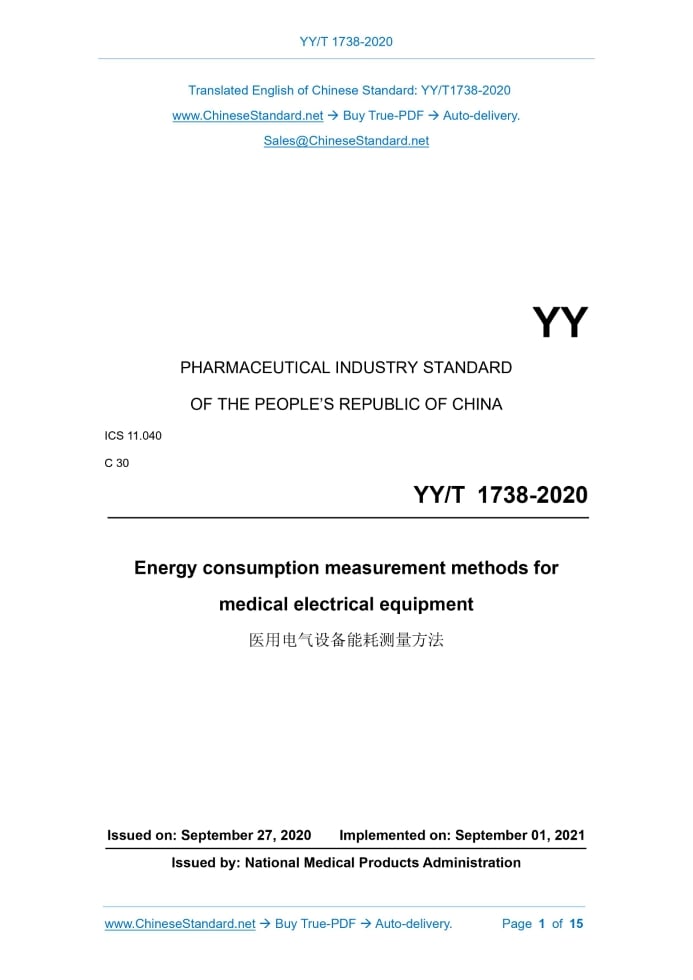 YY/T 1738-2020: Energy consumption measurement methods for medical electrical equipment Delivery: 9 seconds. True-PDF full-copy in English & invoice will be downloaded + auto-delivered via email. See step-by-step procedure Status: Valid